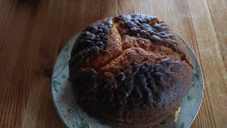 Το έψησα σε ταψί με διάμετρο 20 εκατοστών για να γίνει ψηλή.Από φόβο να μην βγει άψητη στο εσωτερικό της την άφησα λίγο παραπάνω από 55 λεπτά και μου σκούρυνε η αλήθεια από πάνω.Δεν το έβαλα όμως κάτω.